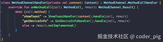 MethodChannel(flutterEngine.dartExecutor.binaryMessenger, CHANNEL).setMethodCallHandler { call, result ->