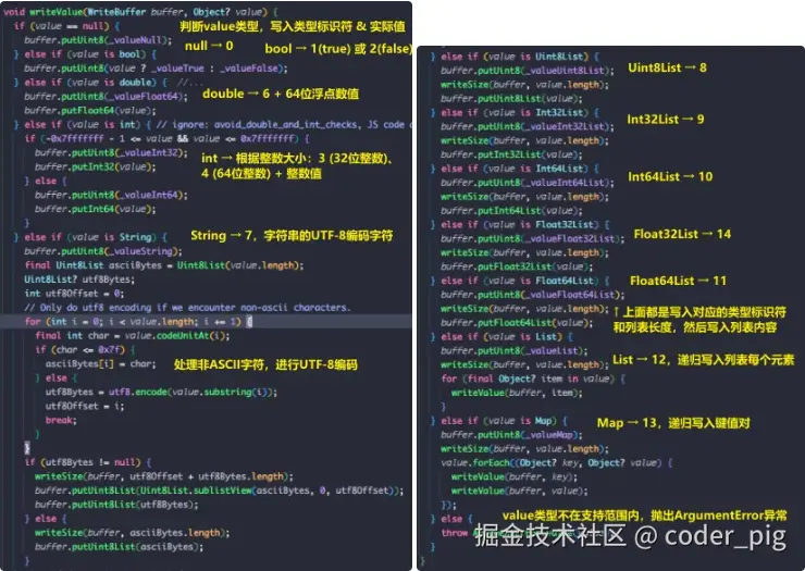 调用 StandardMessageCodec#writeValue() 往 buffer 里写数据,点开源码:
