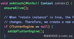 而后调用的 onAttach() ,会触发 FlutterEngine 的初始化方法 setUpFlutterEngine() :