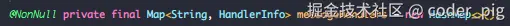 呕吼,就是定义了一个map,来存每个 channel 对应的 handler,然后这个handler的类型是 IncomingMethodCallHandler: