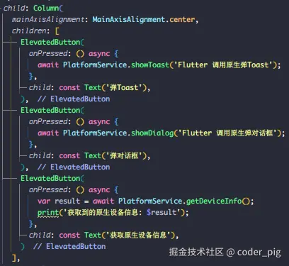 final String result = await platform.invokeMethod('showToast', 'Flutter调原生弹Toast');