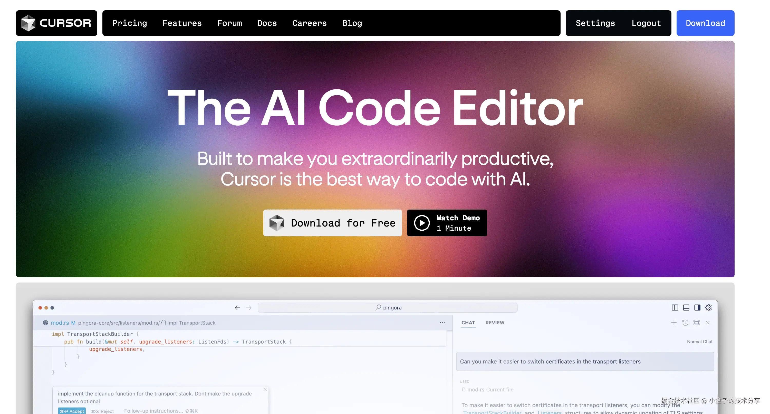 最开始接触 cursor 的时候是在去年年初,openAI ChatGPT 带火了一批 AI 概念产品。GitHub 的 Copilot 自不用说,很早就在使用,有了大模型的加持当时也是如日中天。 我记得 cursor 当时主打的点是: