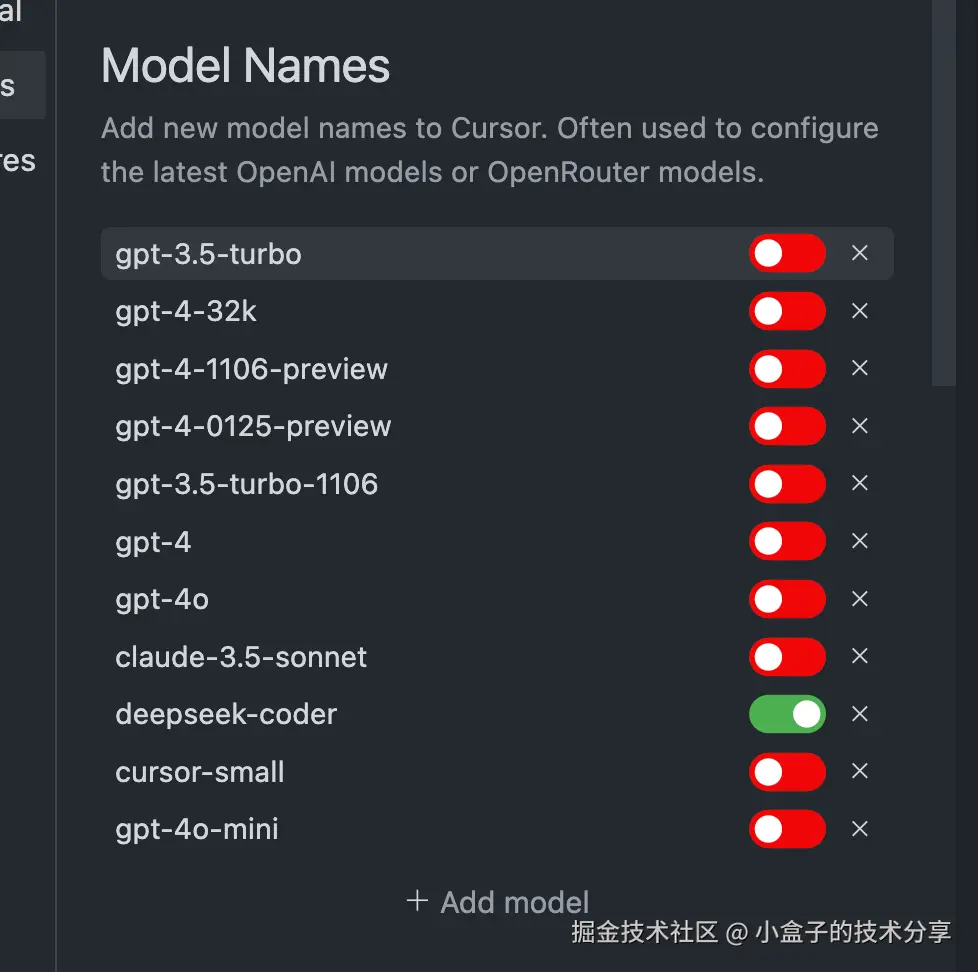 我说一下重点,如果你使用 cursor 是包含两部分费用的,一部分是软件的费用,这部分比如一个月 20$ 是付给 cursor 的,另一部分是模型的使用费用,这个是你付给像 openAI 这样的模型提供商的。那么加起来可能一个月你至少有 30$ 以上的成本。不过关于模型这部分,因为 cursor 可以添加 deepseek 的 coder 模型,所以模型使用成本算是打下来了,因为 deepseek 模型的 API 是白菜价