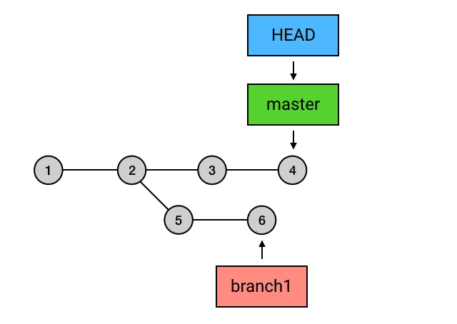 可以看出,通过 rebase,5 和 6 两条 commits 把基础点从 2 换成了 4 。通过这样的方式,就让本来分叉了的提交历史重新回到了一条线。这种「重新设置基础点」的操作,就是 rebase 的含义。