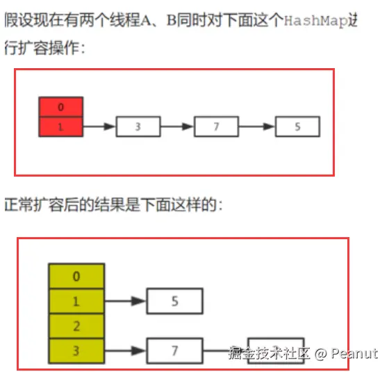 为什么1.7中多线程头插法会死循环,说步骤?(难,太难了,偶尔问)