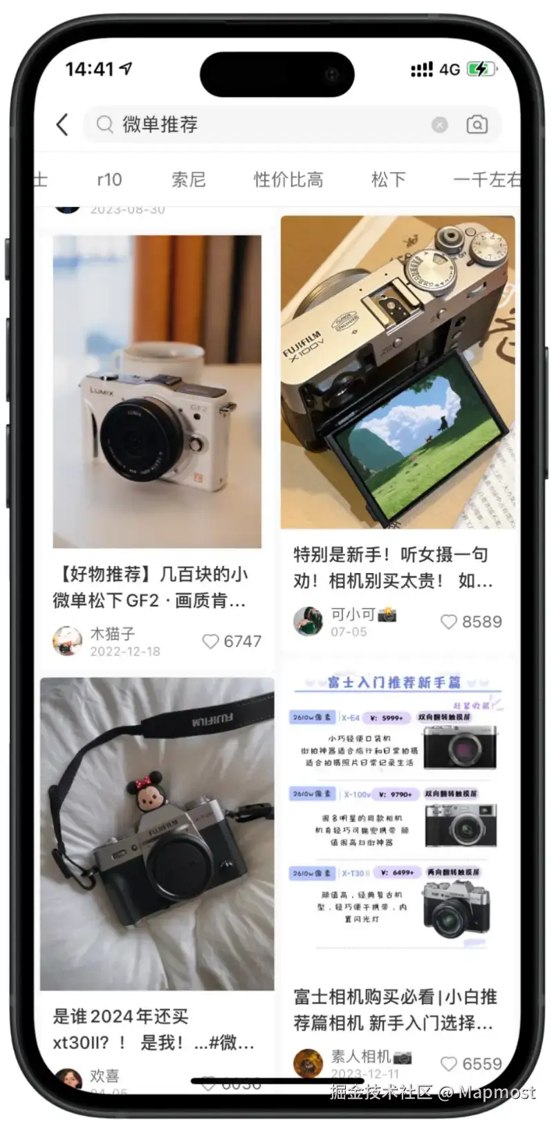 小红书上有很多有影响力的网红和KOL,他们通过自己的内容吸引了大量的粉丝和关注者。一个很流行的话题就是“我的宝藏相机”,很多网红和KOL都会在这个话题下分享自己使用的相机和拍摄技巧。而在这些分享中,富士相机无疑是最受欢迎和最被推荐的品牌之一。小红书搜索“微单推荐”,基本十有八九是富士相机的推荐。