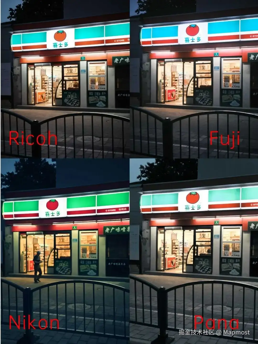 尼康仿富士CN测试对比,通过灯牌可见富士调色的大胆,来源:pure白box