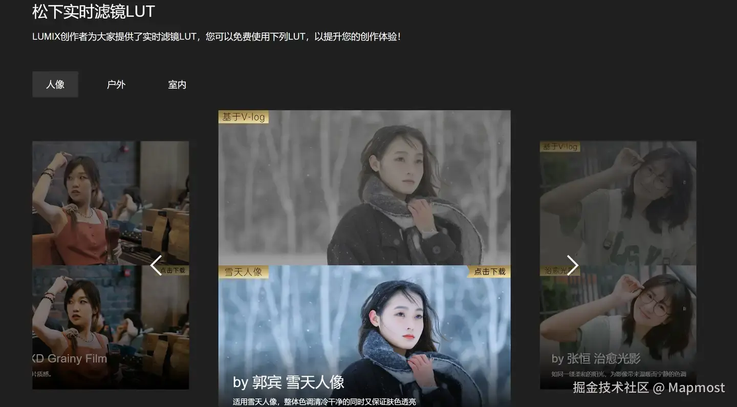 松下官方:松影俱乐部免费提供了多种实时滤镜LUT,来源:公众号:松影俱乐部