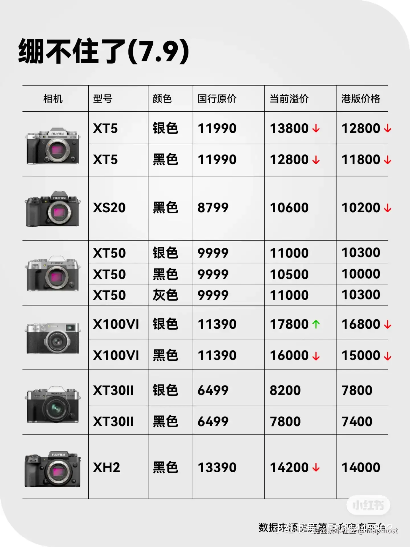 截止到今年7月份,富士各机型均处于溢价状态,来源:小红书博主:FILM THELUT