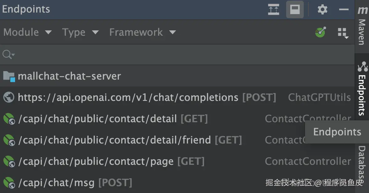 可以通过 IDEA 的 Endpoints 功能快速查看项目中的接口,并定位到源码: