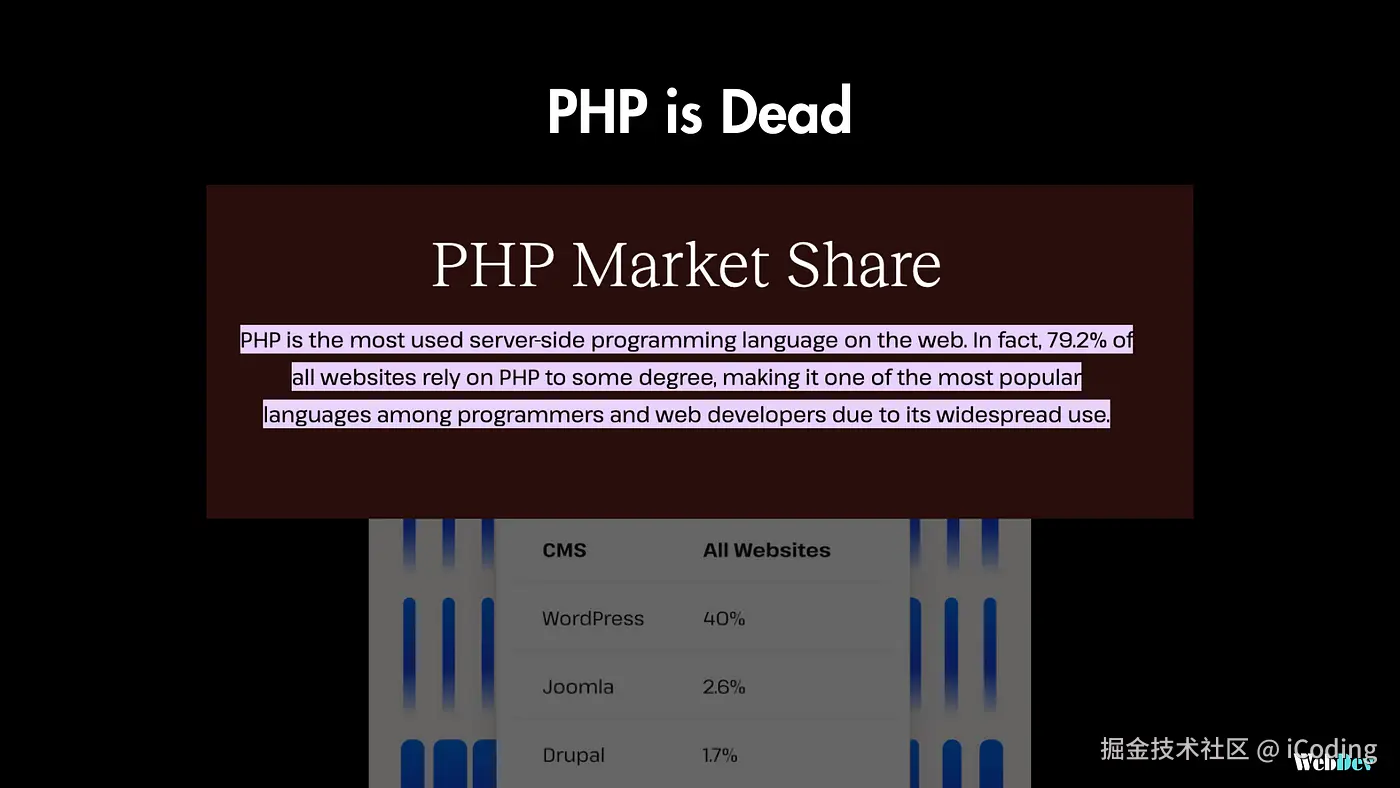 这整个AI的恐慌让我想起了“PHP已经死了”的事情。多年来,我们一直听到这种说法,但PHP仍然为网络的很大一部分提供动力。