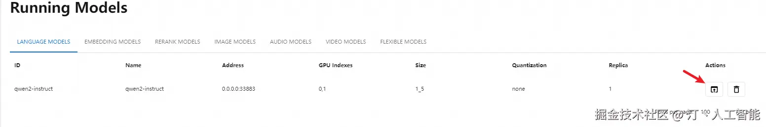 Xinference 默认会在本地启动服务,端口默认为 9997。因为这里配置了-H 0.0.0.0参数,非本地客户端也可以通过机器的 IP 地址来访问 Xinference 服务。