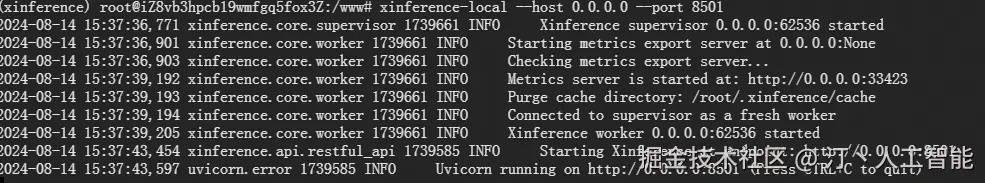 2024-08-14 15:37:36,771 xinference.core.supervisor 1739661 INFO Xinference supervisor 0.0.0.0:62536 started