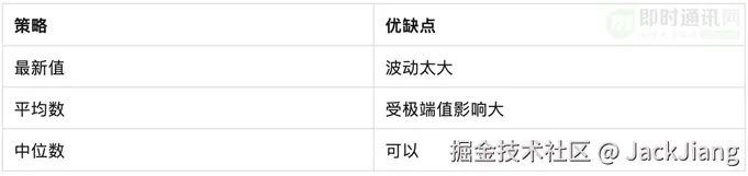 - 3) 来自算法本身限制,中位数机制本身就决定了当用户网络环境快速变更后无法快速响应。比如,用户从WIFI信号差的地方移动到路由器附近,网络质量立即变得极好,此时没有足够数量的新样本积累,弱网诊断输出的仍是弱网;