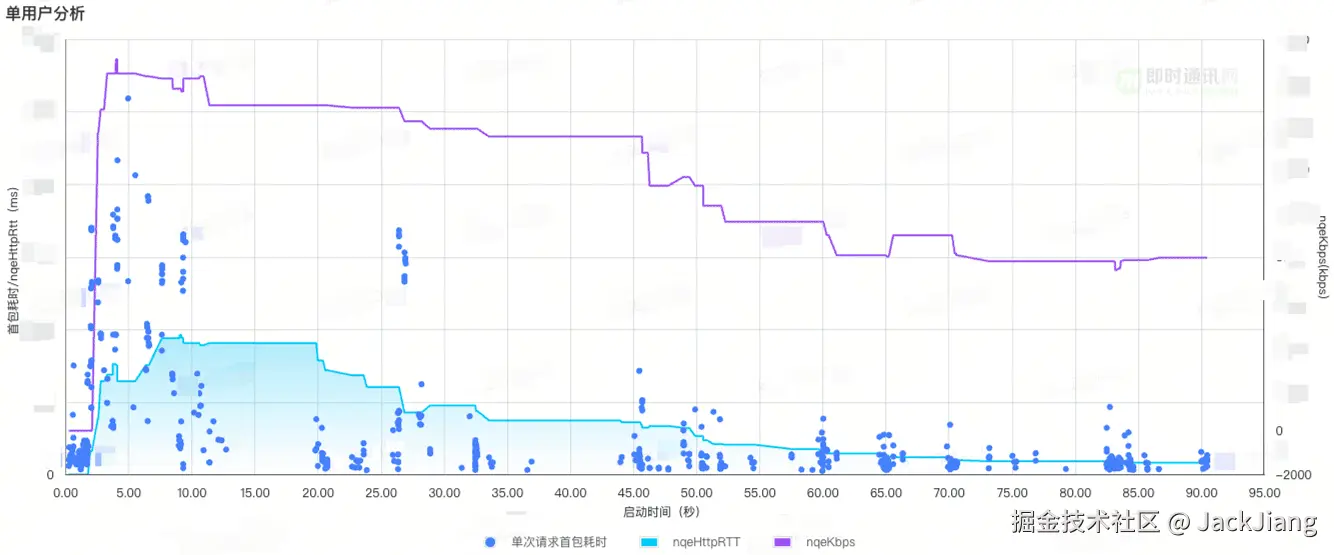 用户B 全部网络请求的首字节耗时与nqeHttpRTT: