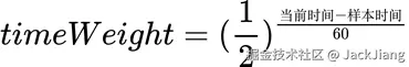 用户网络质量可能随时间而发生变化,最新的样本数据更接近于当前网络环境。我们对样本数据施加时间权重,样本数据每60秒降低一半权重,那么越新的样本权重越高。