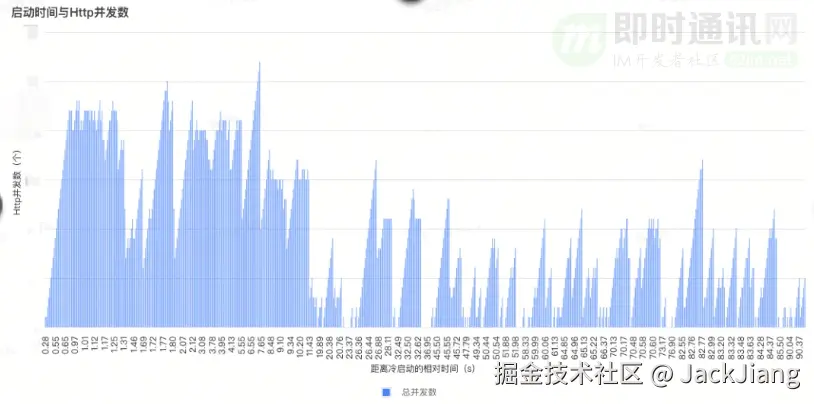 用户A启动90秒内Http并发数量(线上数据):