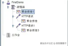 正如上面所说的我们可以把聚合报告放在HTTP请求目录的下面,但是不知道有没有人跟我想的是一样的,就是聚合报告可不可以放在线程组层级的下面,下面我们就来验证这个说法,如下图所示: