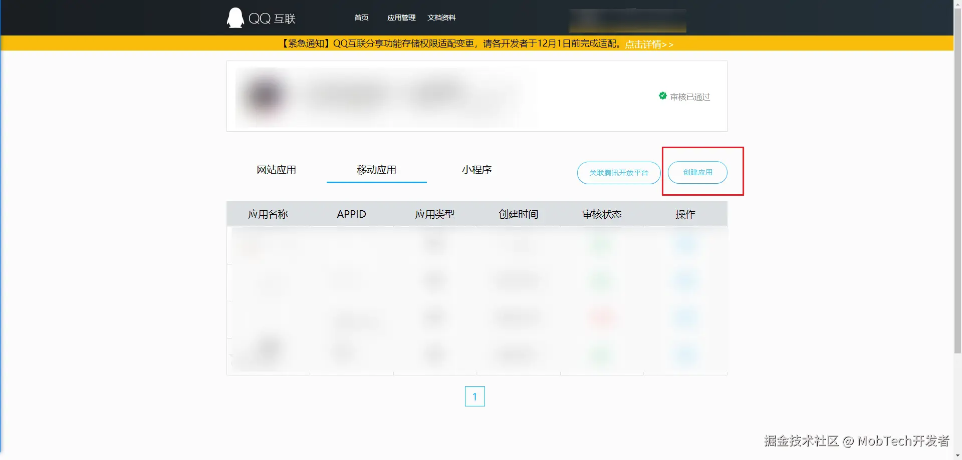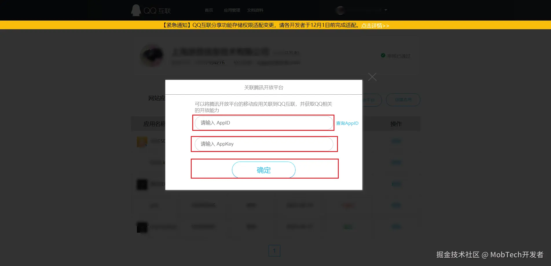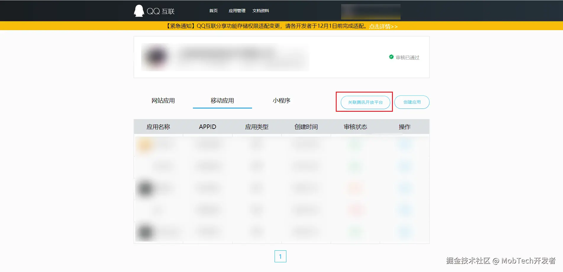 腾讯开放平台的移动应用关联到QQ互联,并获取QQ相关的开放能力。