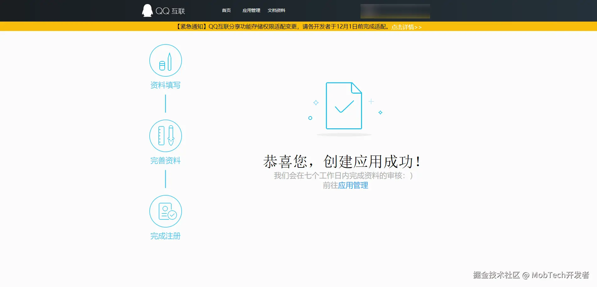 完成以上内容填写后,QQ平台应用创建已经完成,可正常使用。