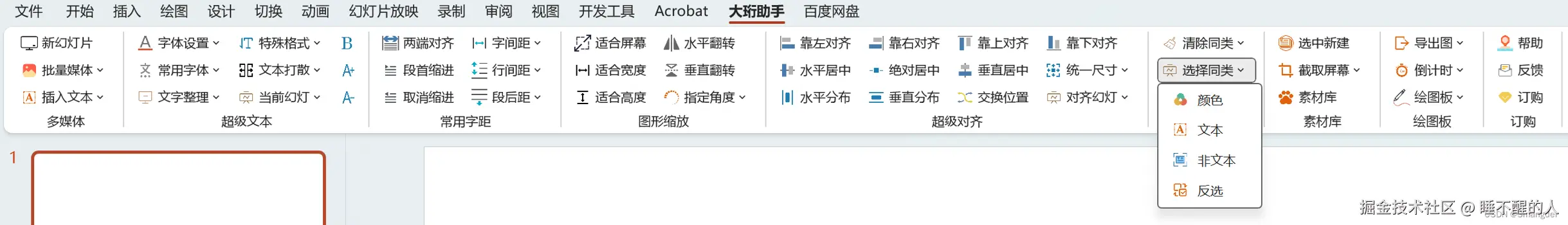 对于选中的形状,一键选中当前页中的所有相同颜色的形状