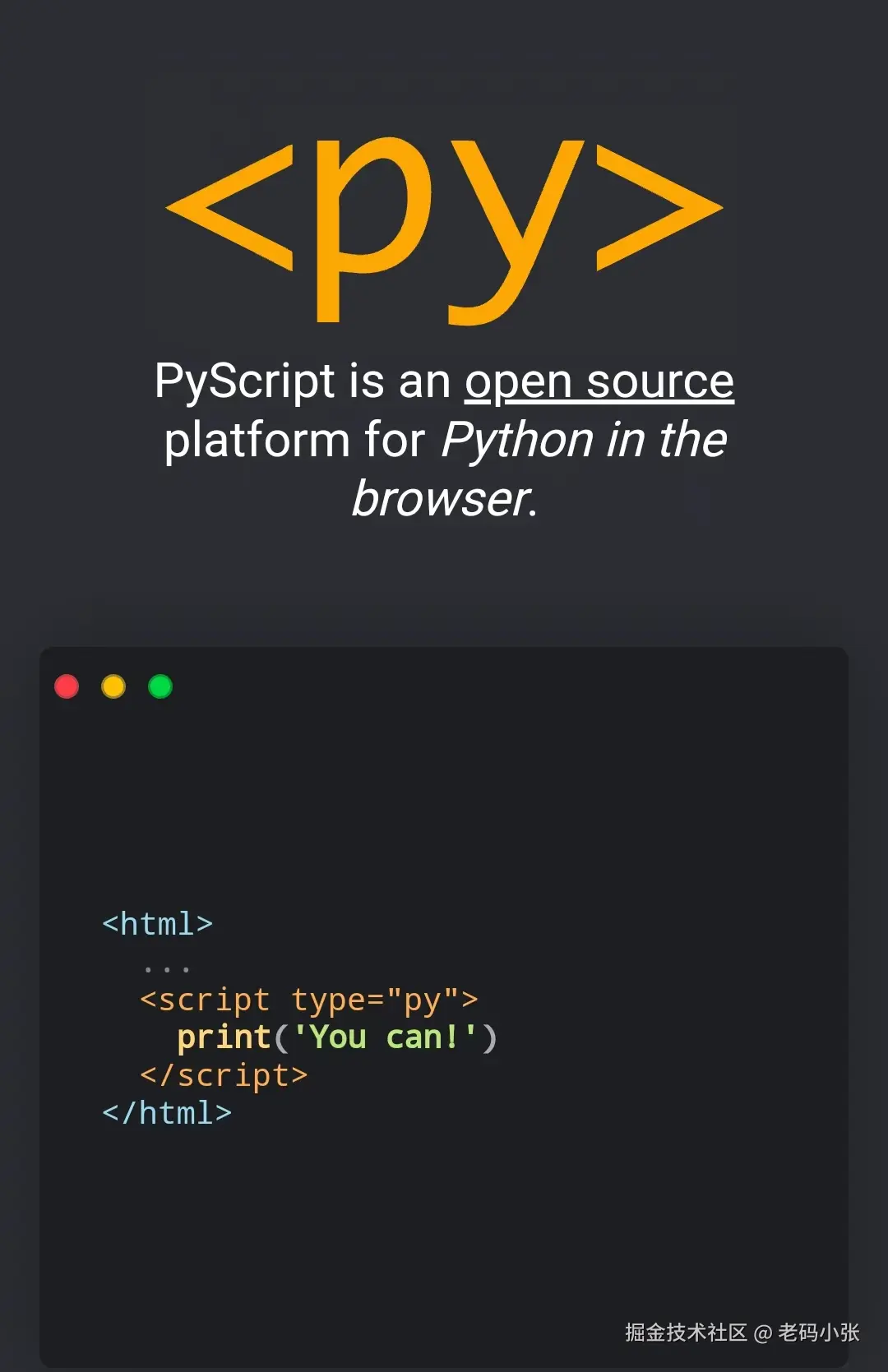 发现了一个非常有趣的项目,叫做PyScript。它是一个开源平台,能够让你直接在浏览器里运行Python代码。作为一个Python爱好者,这个项目真的是让我眼前一亮,所以我忍不住想和大家分享一下。