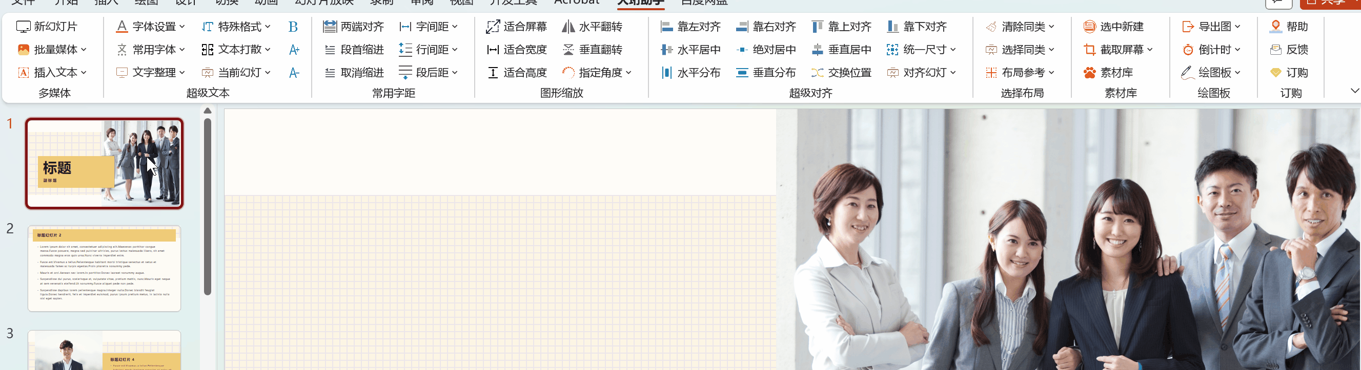 PPT大珩助手是一款全新设计的Office PPT插件,它是一款功能强大且实用的PPT辅助工具,支持Wps Word和Office Word,能够轻松帮助您修改、优化和管理幻灯片。凭借丰富的功能和用户友好的界面,PPT大珩助手能够助力您打造出精美而专业的演示文稿。我们致力于为用户提供卓越的使用体验,始终倾听用户的反馈和建议,不断改进和创新,以满足您的各种需求。相信通过使用PPT大珩助手,您能够高效而愉悦地完成幻灯片制作任务,并展示出令人印象深刻的演示效果。