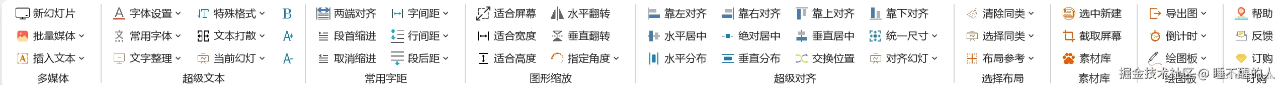 PPT大珩助手将幻灯片整合了常用的对齐操作对象,包括文字对齐、对象对齐和对齐到幻灯片,对齐功能包括上对齐、下对齐、左对齐、右对齐、绝对居中、水平居中、垂直居中,提供水平分布和垂直分布布局,拥有统一对象尺寸功能,交换对象位置功能。
