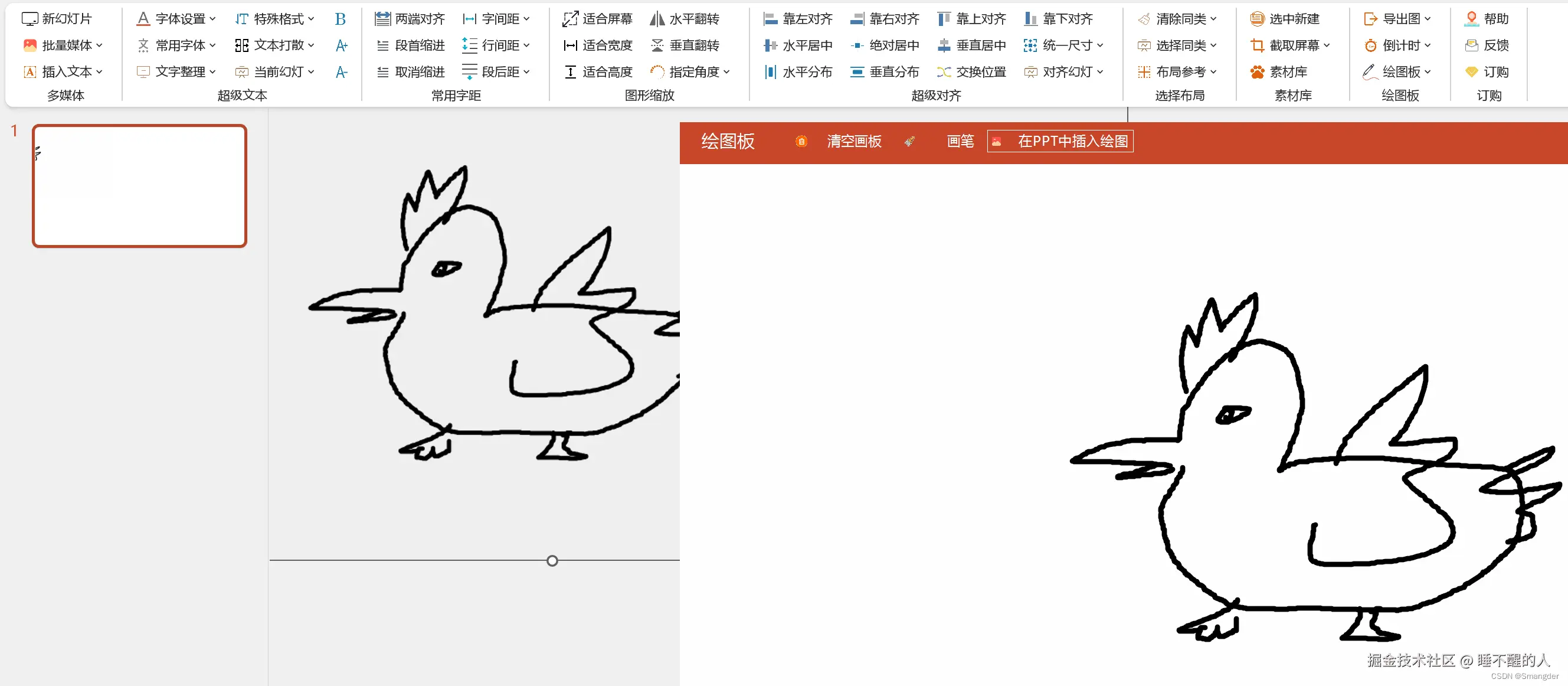 通过手绘的方式,快速构建自己的想法和创意,通过在PPT中插入绘图,植入背景透明的绘图,点击画笔可切换橡皮擦,可以清空画板重新绘制。