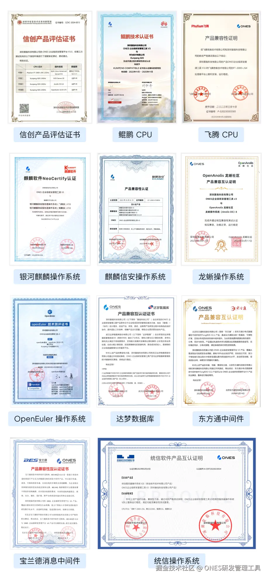 ONES 为满足相关客户国产化需求,从处理器、操作系统、中间件、数据库等几层分别做了头部产品的适配,达到实际意义上的全栈信创支持,已经在数十家客户成功落地。