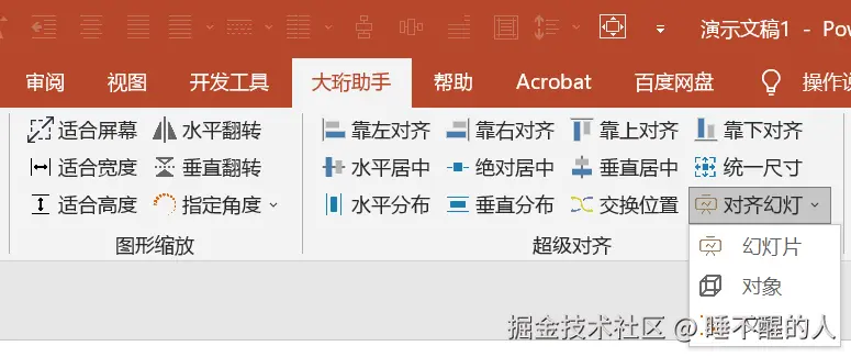 PPT大珩助手将幻灯片整合了常用的对齐操作对象,包括文字对齐、对象对齐和对齐到幻灯片,对齐功能包括上对齐、下对齐、左对齐、右对齐、绝对居中、水平居中、垂直居中,提供水平分布和垂直分布布局,拥有统一对象尺寸功能,交换对象位置功能。