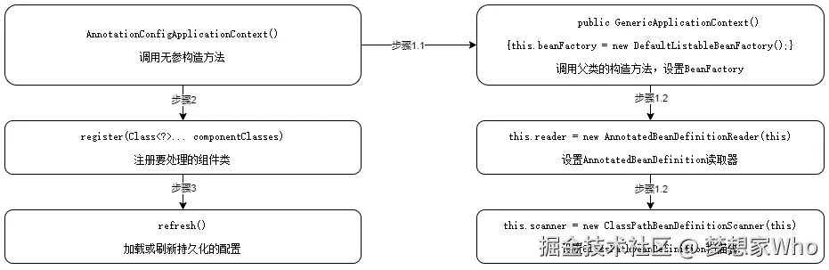 AnnotationConfigApplicationContext的实例化三步,分别为: