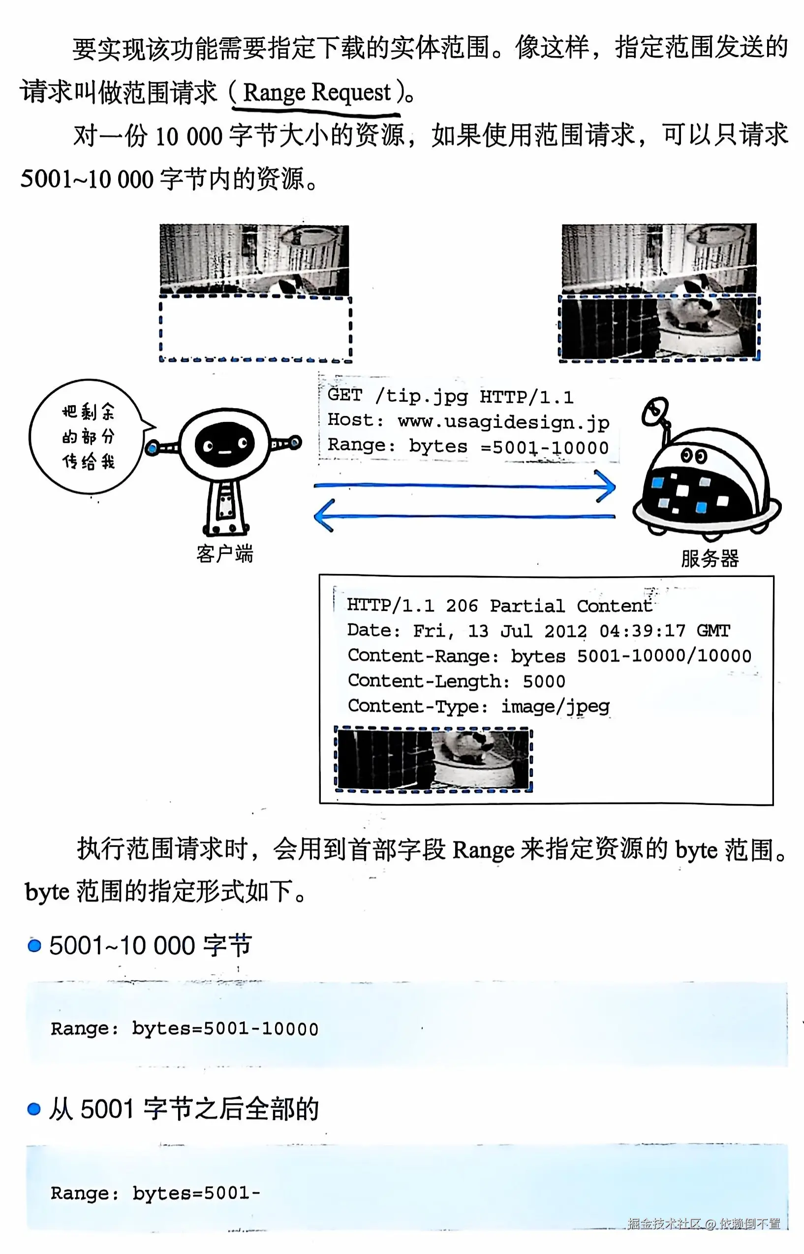 这里我们先来借助书籍《图解HTTP》中对Range请求头的讲解,来学习一下: