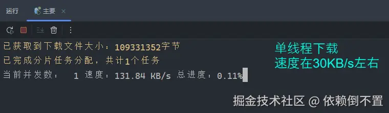 但是在我们客户端和服务端之间网络波动较大的情况下,例如我们国内从Github下载文件的时候,就会发现多线程下载速度比单线程快得多,反之使用单线程完全无法充分利用我们的网络带宽。