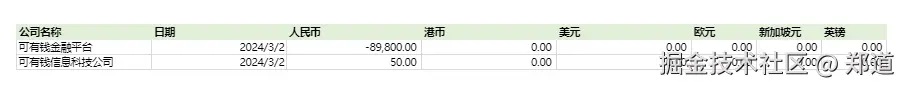 4. 公司余额汇总