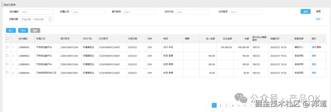 - 查询、导出:允许用户根据特定条件检索并导出资金日报的明细数据。