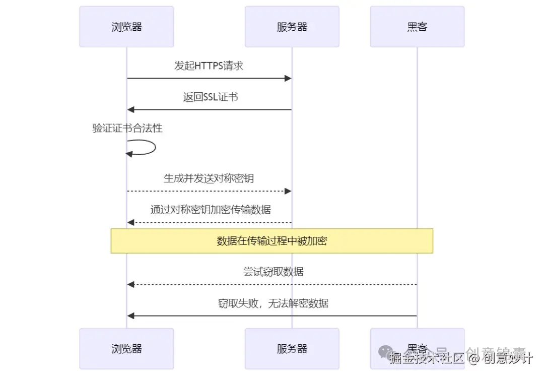 为了进一步理解HTTPS如何保护我们的数据,我们可以用一个简化的图来展示它的工作流程: