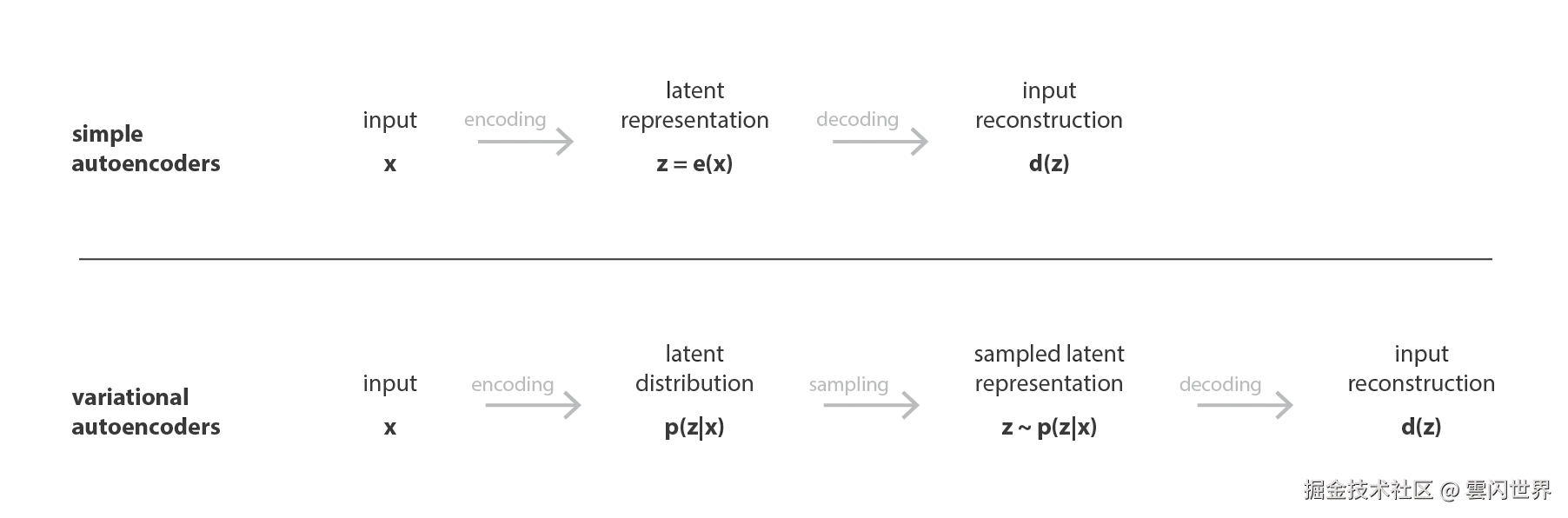 - 假设一个简单的底层概率模型来描述我们的数据,那么 VAE 的非常直观的损失函数(由一个重建项和一个正则化项组成)就可以仔细推导出来,特别是使用变分推断的统计技术(因此得名“变分”自动编码器)