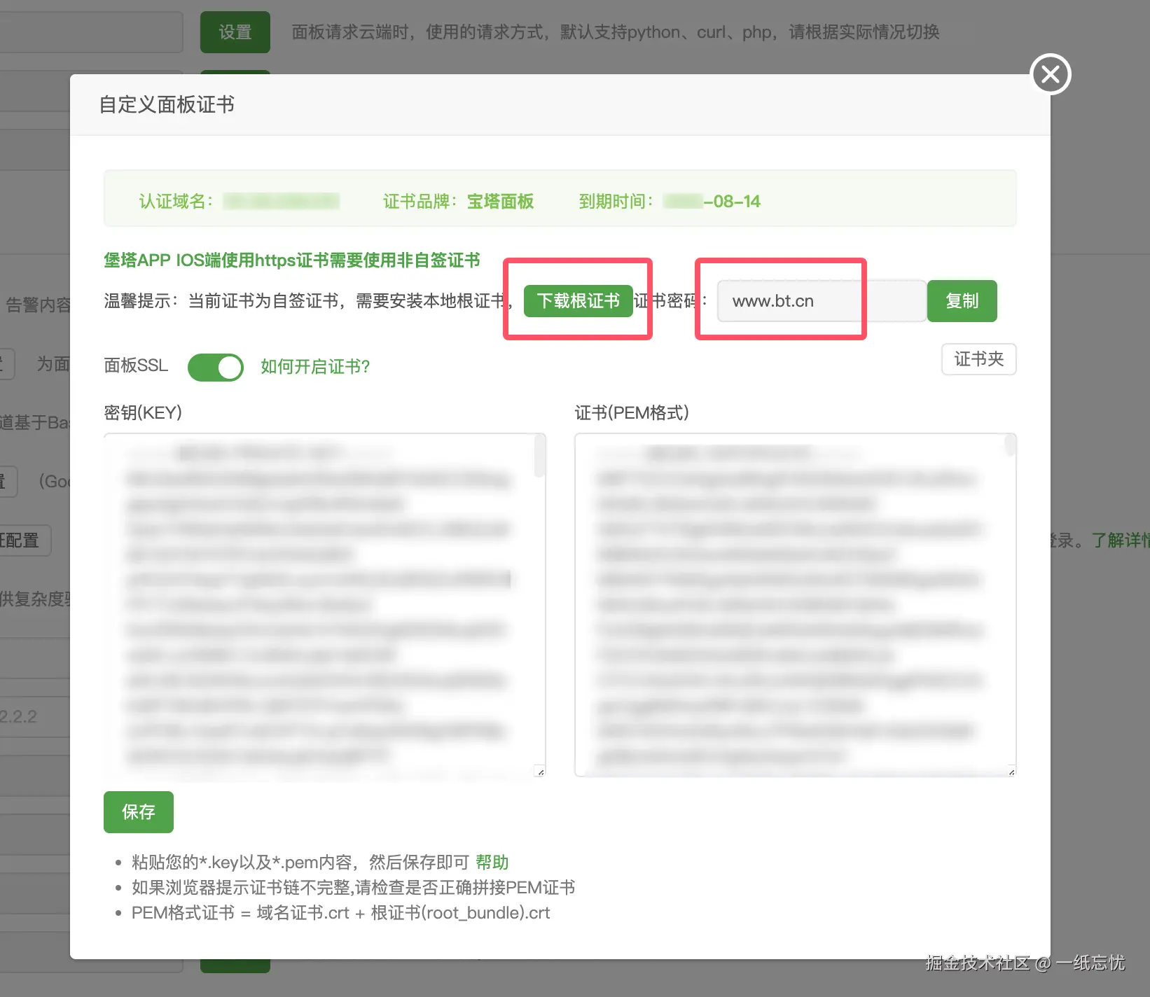 在宝塔论坛找了一下相关内容,发现原来很多人也遇到了这个问题,baota_root.pfx 文件在 Windows 系统中都能导入成功,在 macOS 系统却一直提示密码无效,可能是 pxf 格式兼容问题,那就生成另一种兼容性好的证书。