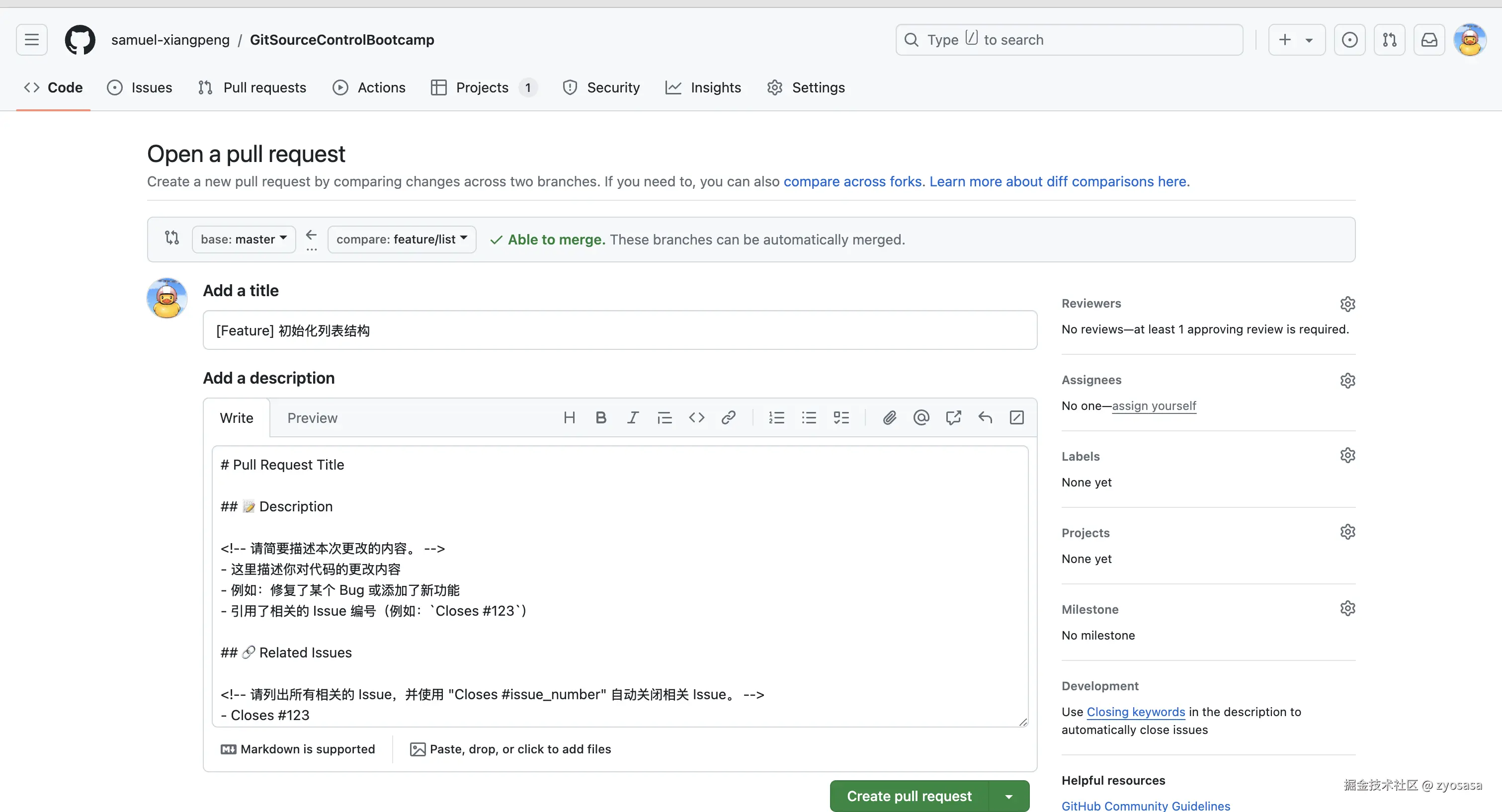 设置拉取(Pull Request)模板