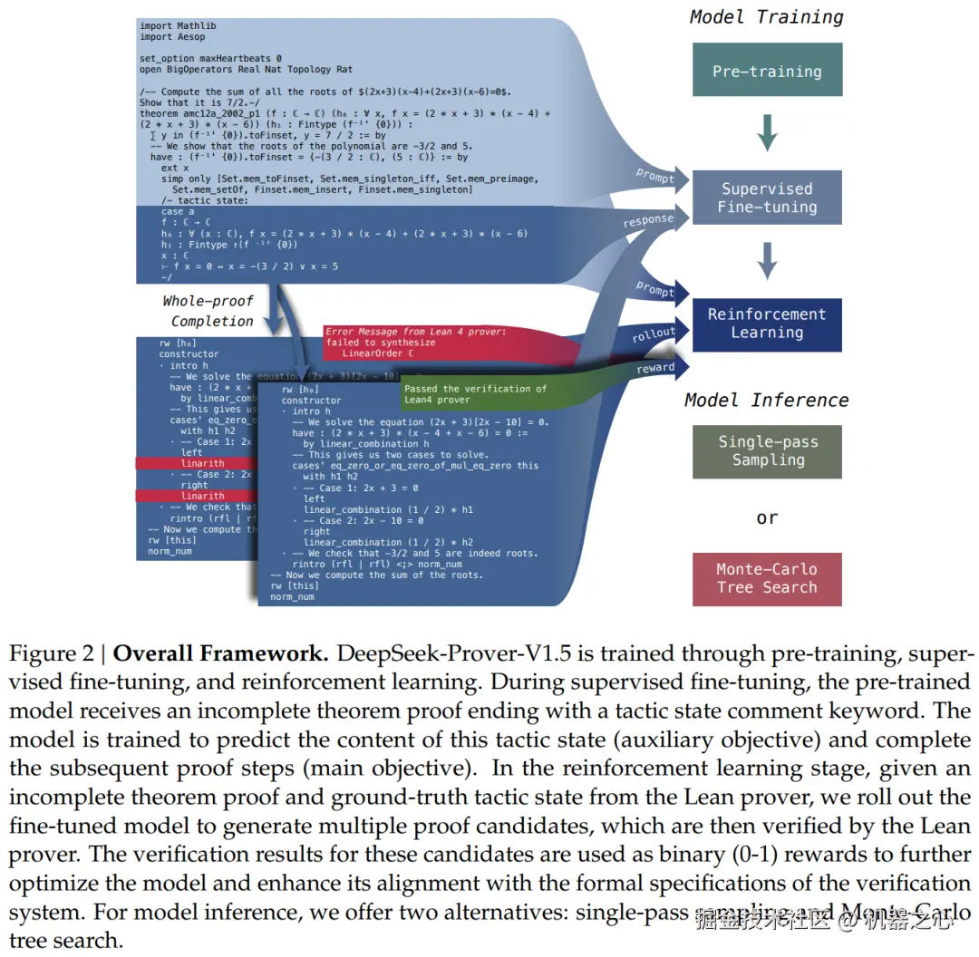 DeepSeek-Prover-V1.5 通过结合强化学习和蒙特卡洛树搜索,显著提升了证明生成的效率和准确性。