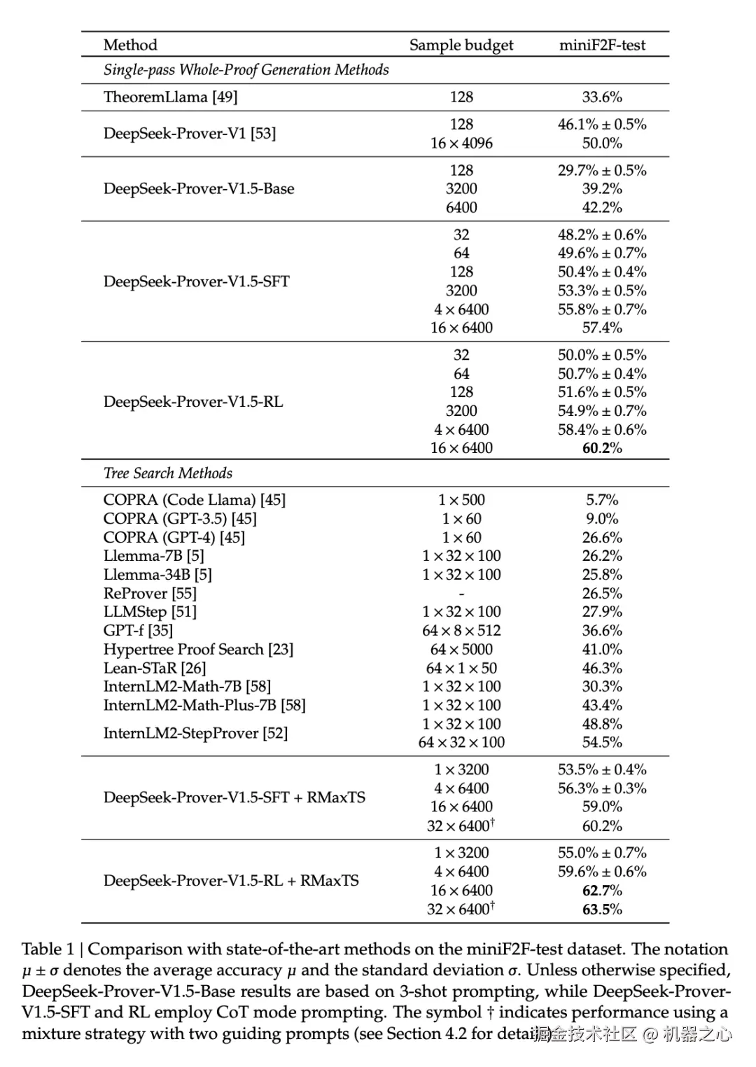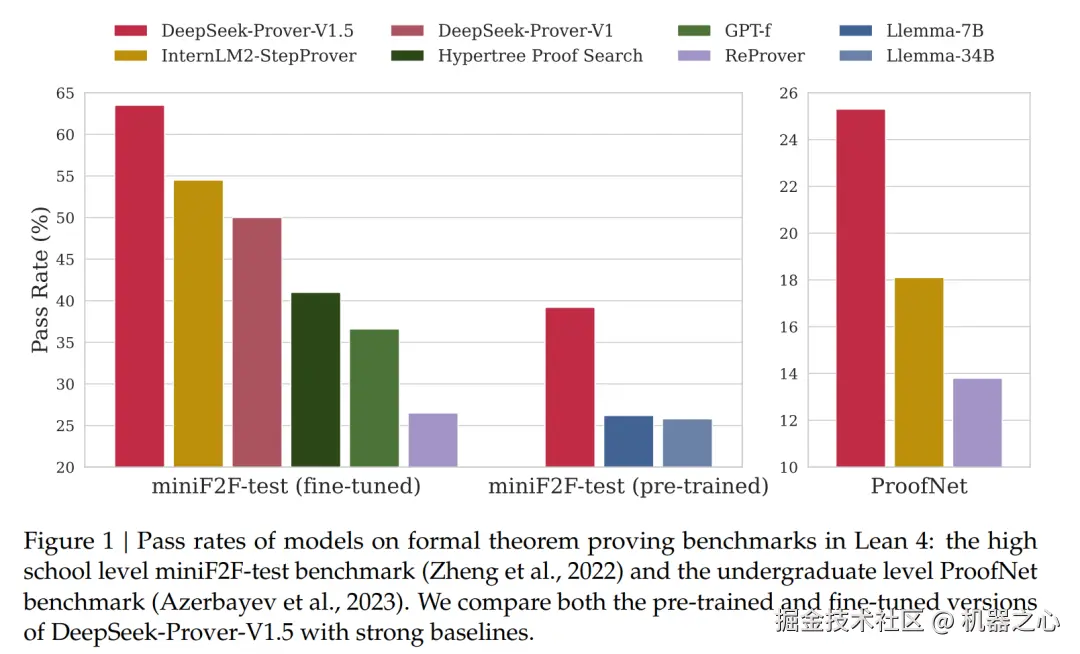 然后,研究者将这些模型与 DeepSeek-Prover-V1.5 进行了对比。
