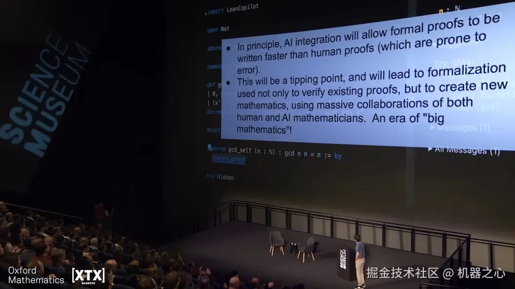 前段时间,著名数学家陶哲轩在牛津数学公开讲座中做了主题为「AI 在科学和数学中的潜力」的主题分享。他指出,将 AI 整合到数学领域将使形式化证明的编写速度超过人类证明(人类证明容易出错)。这将成为一个关键转折点,意味着形式化证明的使用将不仅限于验证现有的证明,还将用于创造新的数学知识。这将通过广泛的人类数学家与 AI 数学家之间的协作来实现。我们将迎来一个「大数学」时代!