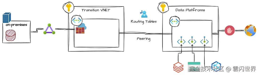 如果您的数据平台不处理敏感信息,并且您不需要高度安全的数据平台,则可以创建一个更简单的设置,无需虚拟网络 (VNet)、VPN 等即可访问公共互联网。但是,在监管严格的地区,需要完全不同的实施计划。该计划将涉及与组织内的各个团队(例如 DevOps、平台和网络团队)甚至外部资源的协作。