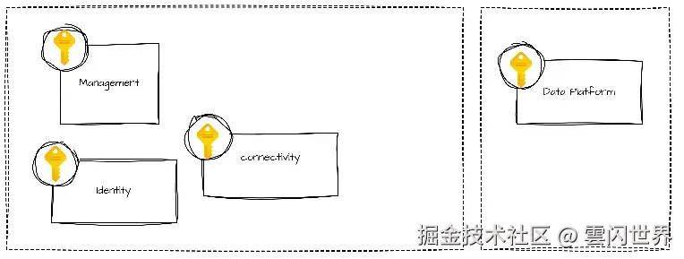 - 平台登陆区:包含共享服务的订阅,例如为应用程序登陆区提供的身份、连接和管理资源。