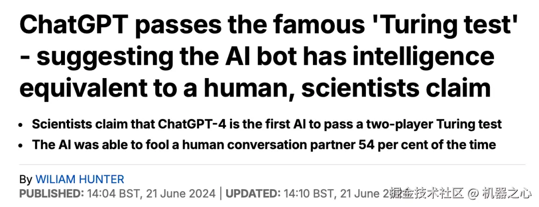 各大媒体也发表了类似的标题,例如某家报纸报道称,「ChatGPT 通过了著名的『图灵测试』—— 表明该 AI 机器人具有与人类相当的智能。」