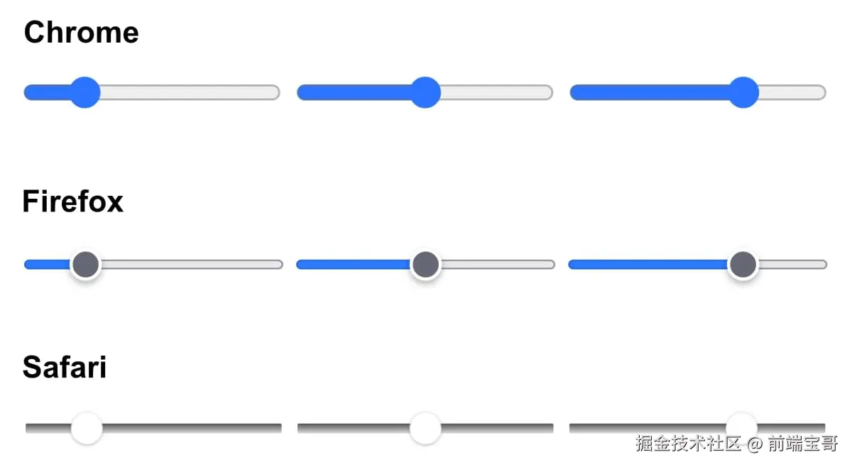 首先,我们来分析一下范围输入元素的结构。它是一个原生元素,每个浏览器都有自己的实现方式。主要有两种不同的实现: