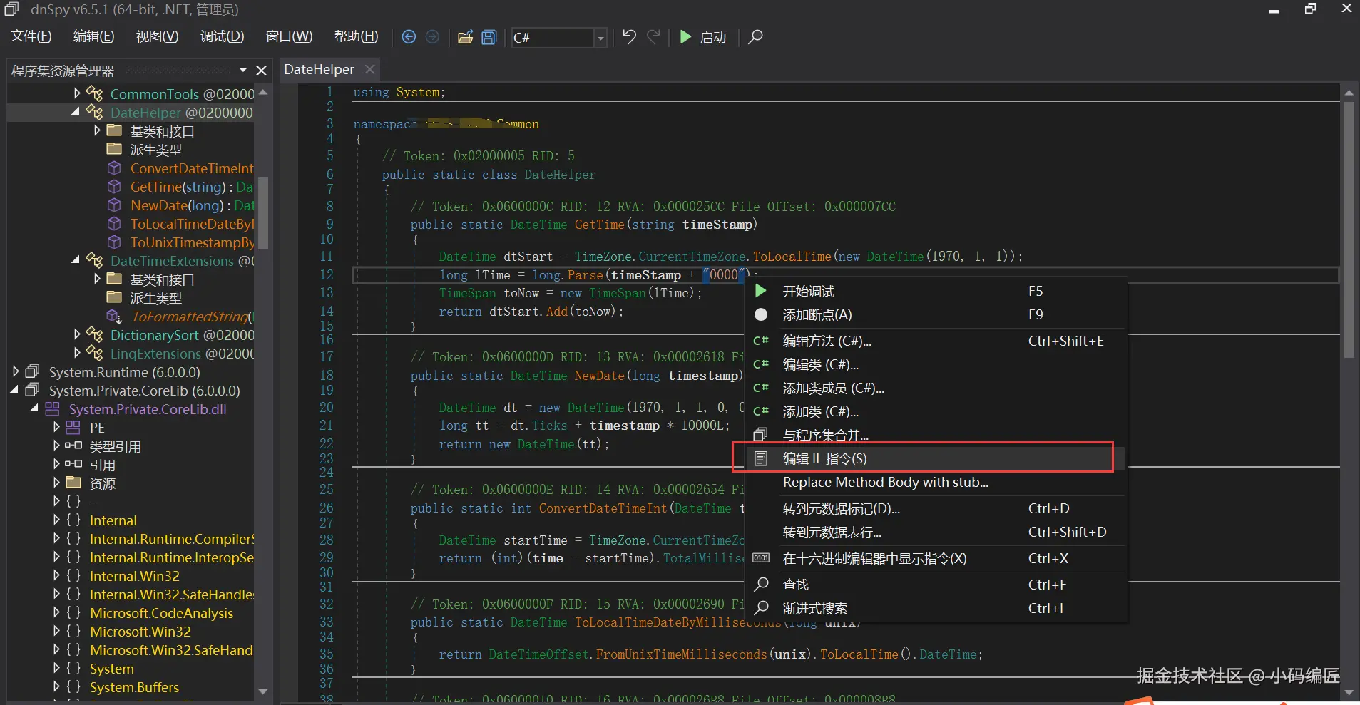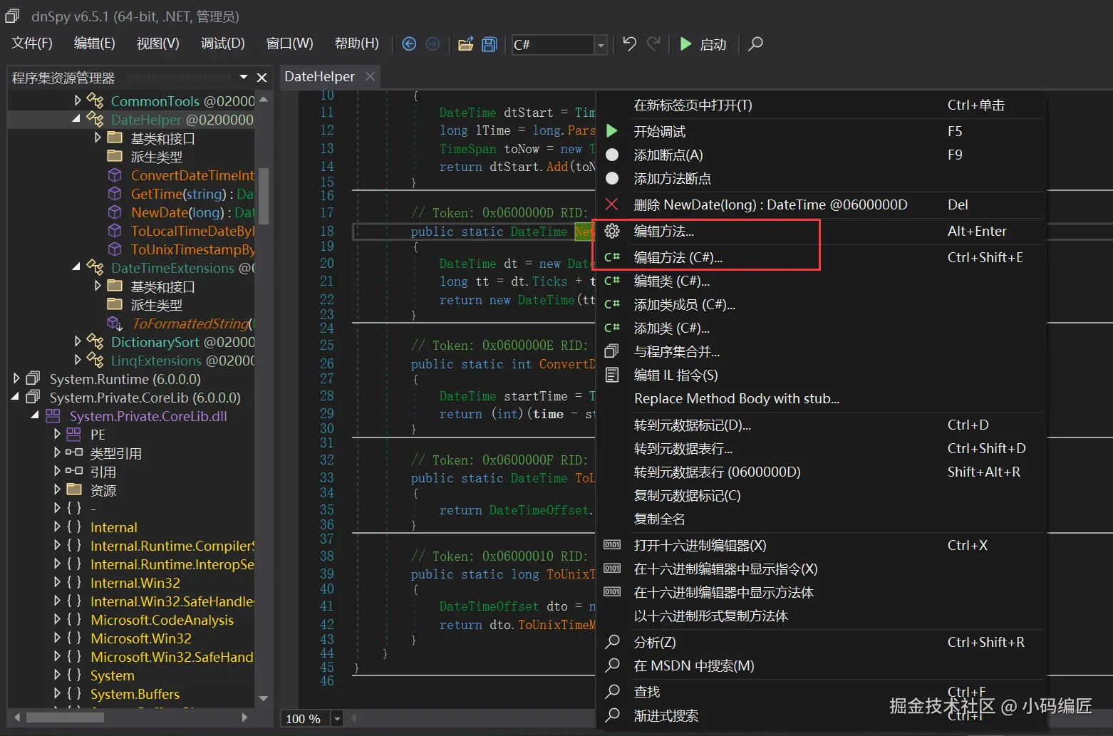 利用 DnSpy 的功能查看、编辑或调试组件。