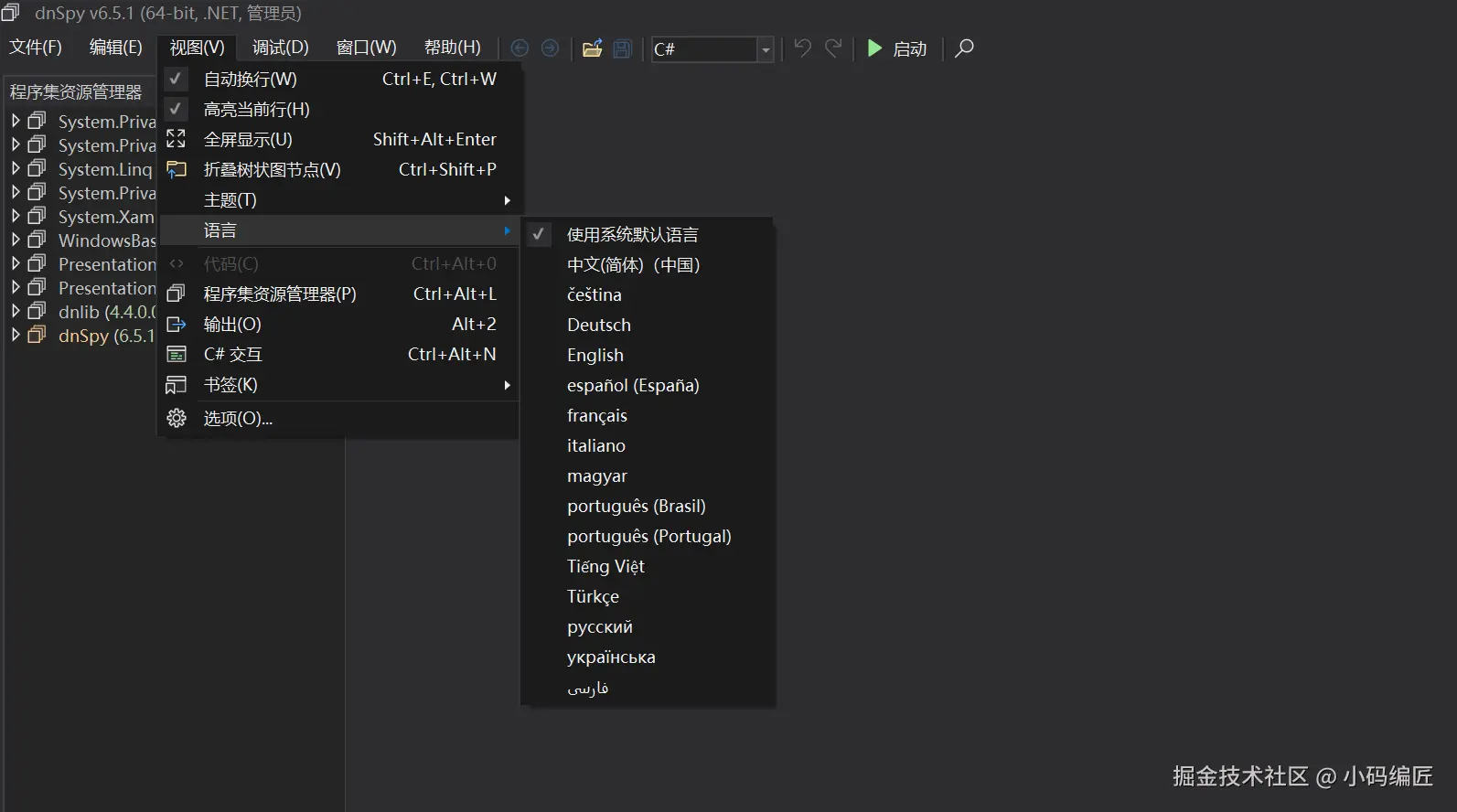 DnSpy 拥有现代化的 UI 界面,包含了蓝色、浅色和深色主题,颜值很高!