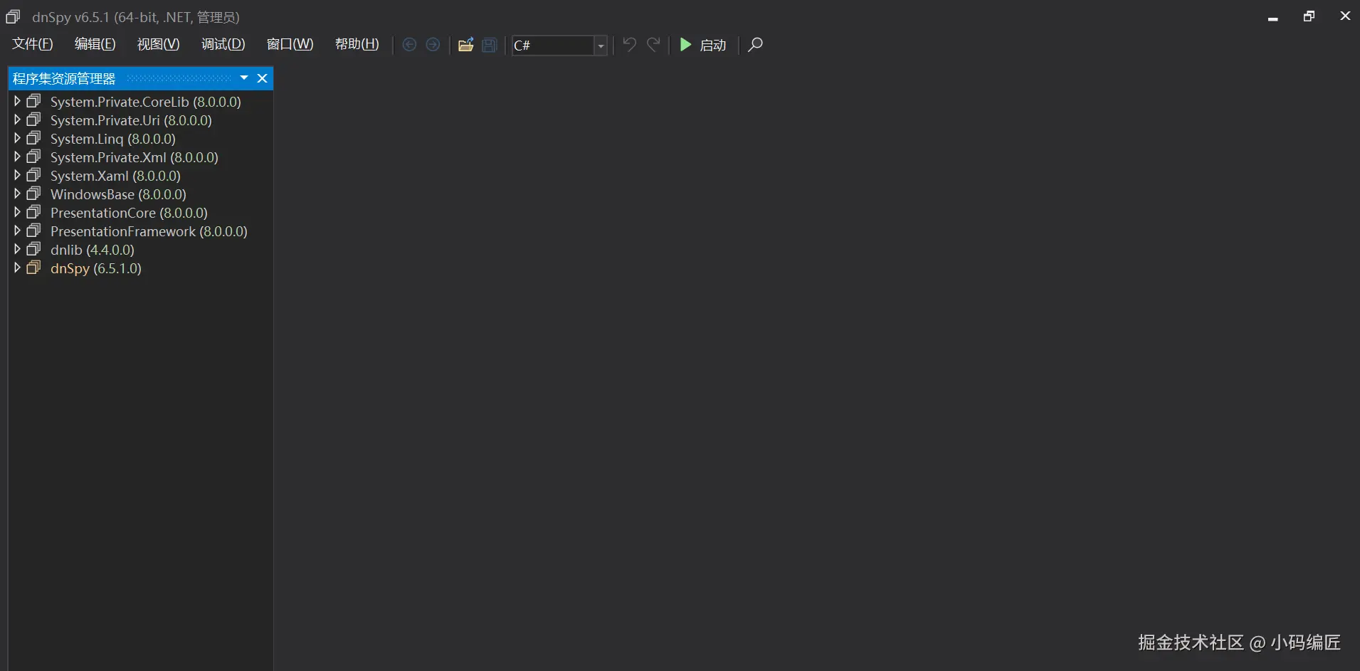 安装完成后,启动 DnSpy 并加载想要反编译或调试的组件。